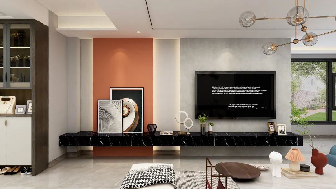 明亮橙为简约的现代空间增添了几多活跃氛围