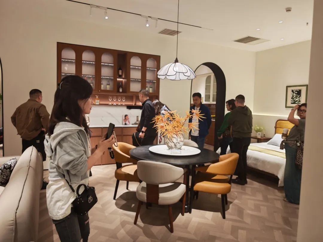 新品发布品鉴会现场,J9集团中古全案凭借独特的空间布局,创新的时尚设计,优质的材料细节以及精心的场景营造,吸引了全国优秀经销商及业界嘉宾们的目光,他们沉浸在高级的美学世界里,感受创新与品质交织的魅力。J9集团中古展厅里人潮涌动,众多经销商都对中古全案新品的创新设计称赞有加,现场签约不断,气氛热烈。
