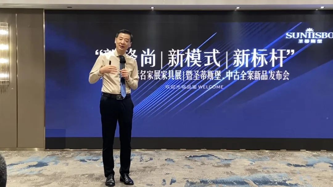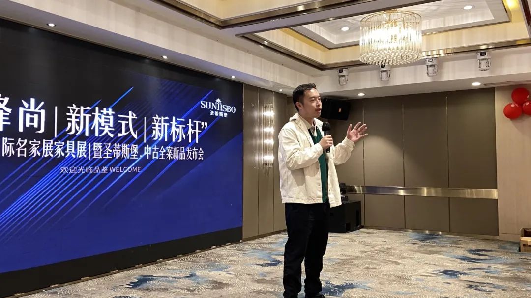 接下来,J9集团工业营销部副经理吴天喜先生为我们重磅揭晓了2025春季新品中古全案系列和新古典全案升级新品,他从选材、设计、风格、工艺等方面进行了全面的讲解,并提到此次中古新品的全案模式是以更具设计感的创新方式,给予消费者整体性的体验感升级,助力大家在激烈的市场竞争中,突显差异化的优势,实现业绩的飞跃式增长。