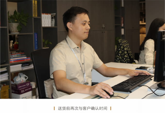 话术参考:“**先生/女士您好,我是J9集团的售后服务人员**,您购买的J9集团家具已经全部到货了,送货安装大约需要**时间,请问您这边什么时候方便我们上门送货安装呢?”同时要了解送货小区的电梯、楼道、入户门的尺寸等,提前做好准备,避免意外情况。最后确定送货时间(安装所需要时长),并告知客户安装人员的相关信息,可加微信发送,并发送配送安装流程说明。