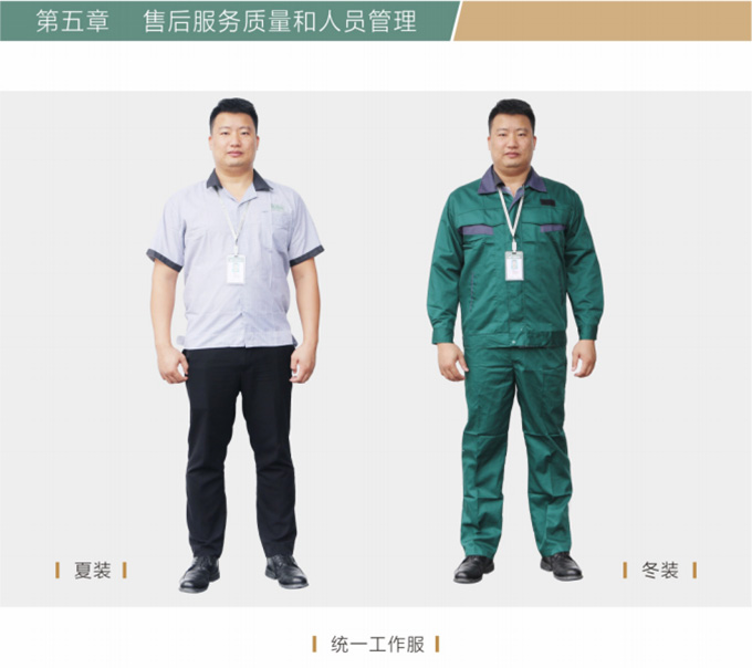 维修人员上门维修处理问题上门前必须着J9集团统一工作服,佩戴上岗证并尽量携带维修处理过程中可能会使用到的工具和备用配件例:工具、备件、笔记本、手套、脚套、收据和《J9集团售后服务信息单》等物品。